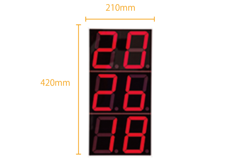 大型表示盤(2桁表示サイズ:210mm×140mm)で遠くからでも鮮明